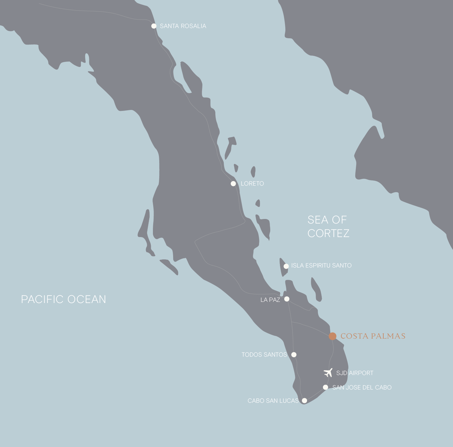 Just 45 minutes from Los Cabos International Airport, Costa Palmas also offers Four Seasons Resort & Residences, a two-mile swimmable beachfront, Marina Village, the Costa Palmas Beach & Yacht Club, Aventura-led exploration, and more than ten exceptional dining experiences, including Michelin-starred chefs.